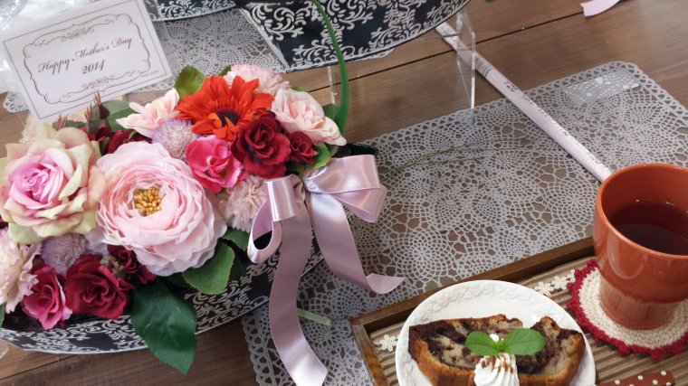こちらが今日作ったというフラワーアレンジメントです(^^)